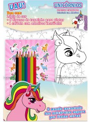 Colorindo com adesivos Unicórnios. Venha brincar e se divertir com a turminha da floresta encantada em mais uma aventura, são 8 desenhos lindos para colorir, adesivos superlegais e vem com lápis de cor.